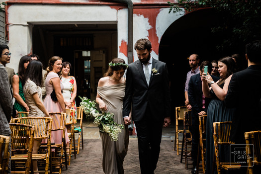 After the group portraits we hopped into the ceremony. The aesthetics of the courtyard, florals, Racheal’s dress, and the readings all combined into a beautiful ceremony. After the ceremony all the guest went inside while the staff transformed the courtyard into a reception area. The reception was super chill.